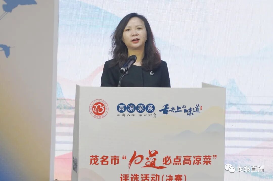 茂名市政协副厅级干部董晓璐为获得茂名市“10道必点高凉菜”的菜品颁奖