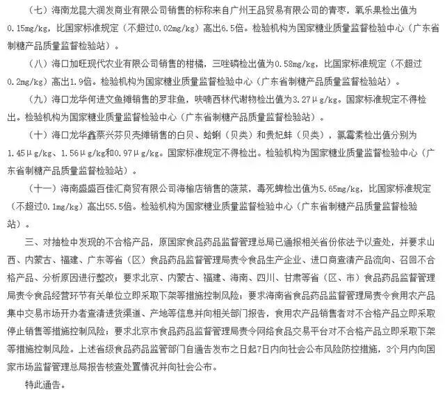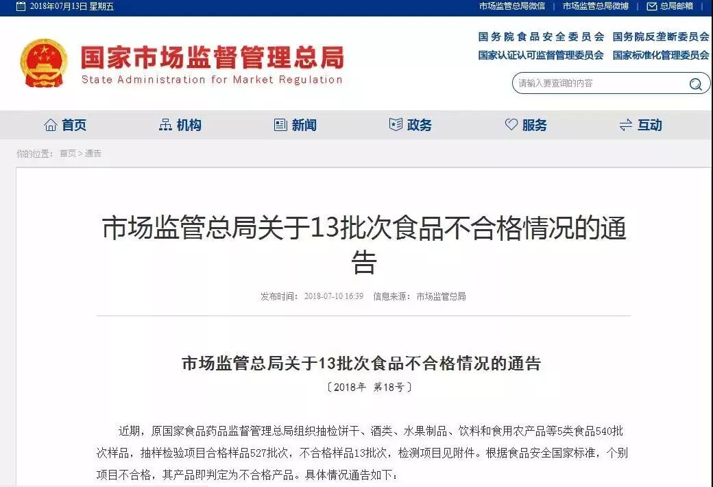 近日,国家市场监督管理总局通报近期食品抽检情况,共有13批次不合格食品上榜。其中广东佳宝集团有限公司生产的九制陈皮被检出铅含量超标,比国家标准规定高出7倍。目前,市食药监局已责令该企业对不合格批次产品下架并召回。