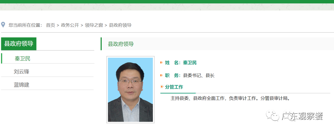 另据东源县政府官网领导一栏显示,秦卫民职务已更新为:县委书记、县长